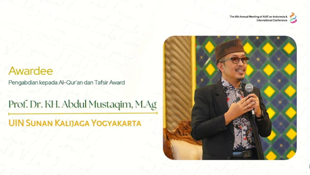 Cirebon, 29 November 2025—Prof. Dr. KH. Abdul Mustaqim, M.Ag., seorang maha guru tafsir UIN Sunan Kalijaga sekaligus pengasuh Pondok Pesantren LSQ Ar-Rohmah Yogyakarta, menerima penghargaan bergengsi AIAT Award 2025 untuk kategori Pengabdian kepada Al-Qur’an dan Tafsir. Penganugerahan ini berlangsung pada tanggal 29 November 2025 dalam rangkaian kegiatan The 8th Annual Meeting of AIAT se-Indonesia dan International Conference di UIN SSC Cirebon.